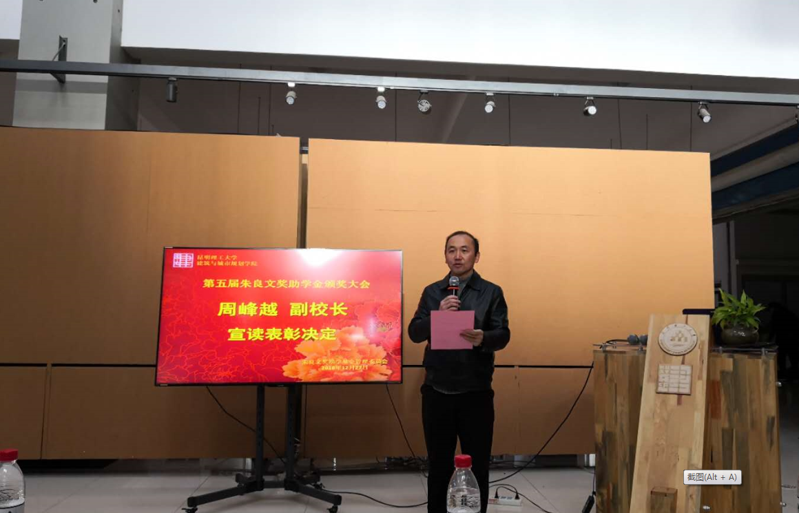 周峰越副校长在颁奖仪式上宣读了“关于表彰2018年度第五届朱良文奖助学金获奖人员的决定”,闫杉杉、和桃娟、李东梅(来自学校扶贫地宣威羊肠镇)、张玲尧、胡李燕、谢金发、高攀玉7位同学获得学习勤奋奖学金,邓宗访、和向源、黄柔3位同学获得助学金,每人奖励和资助5000元。